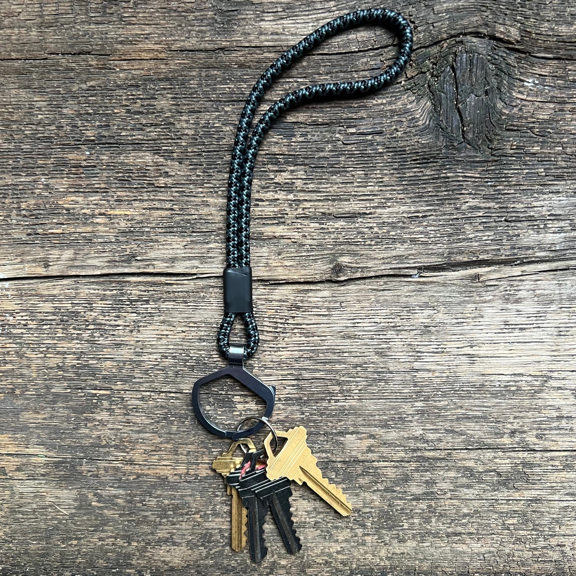 Features easy-open tab for adding or removing keys, and woven rope loop for a secure, grabbable, handle.