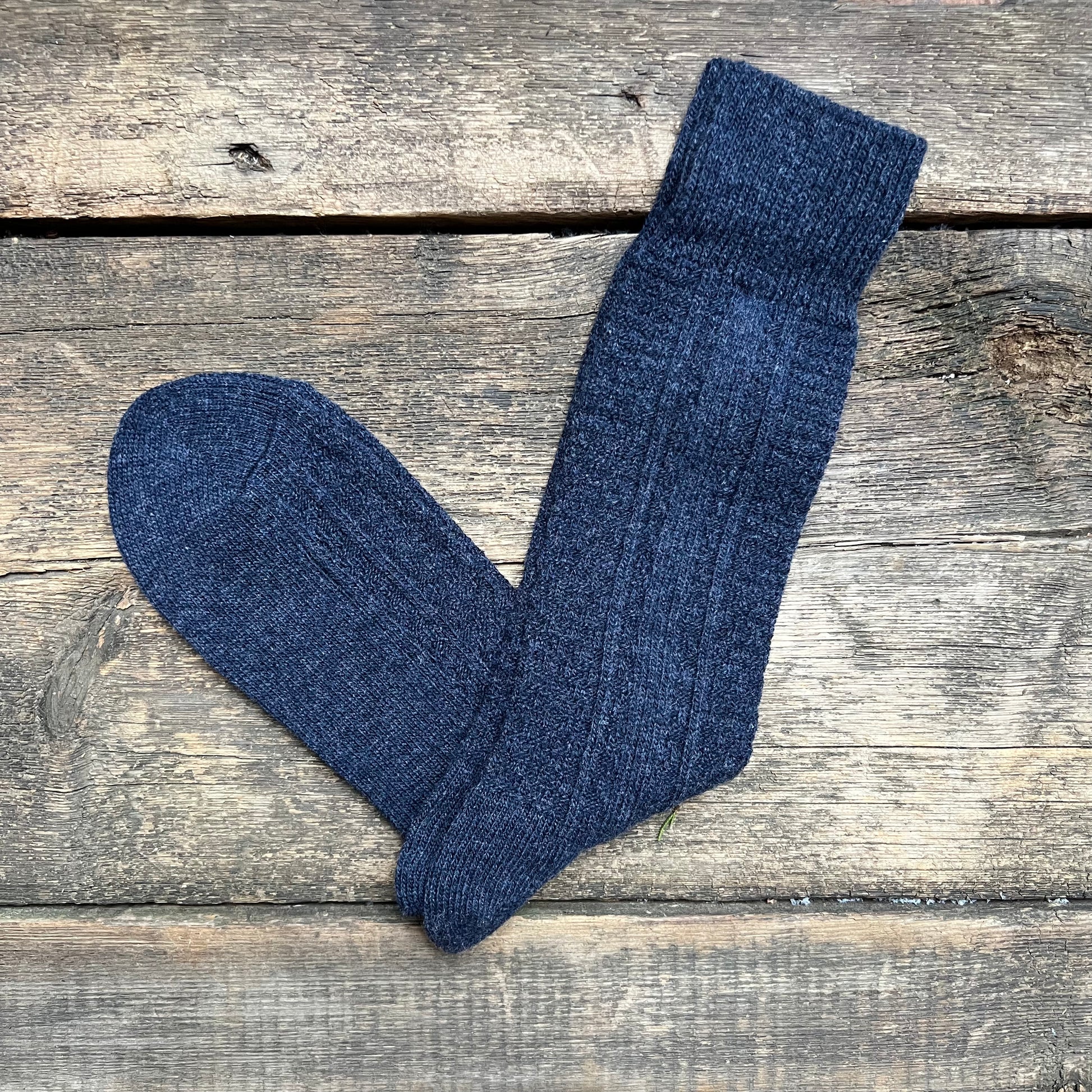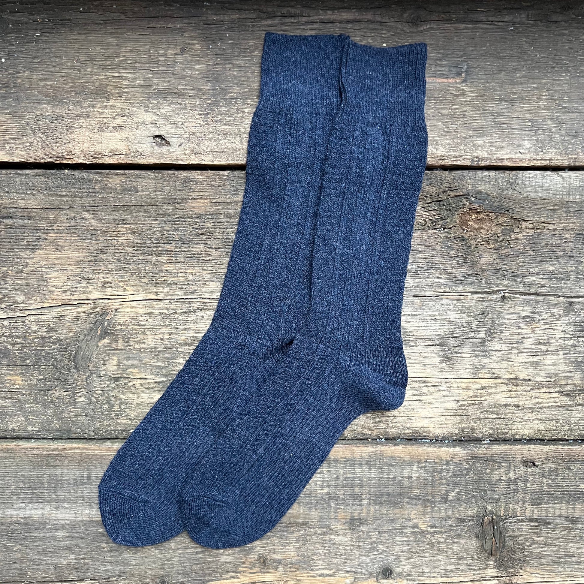 Wool Cashmere Links Combi Crew Socks, Indigo