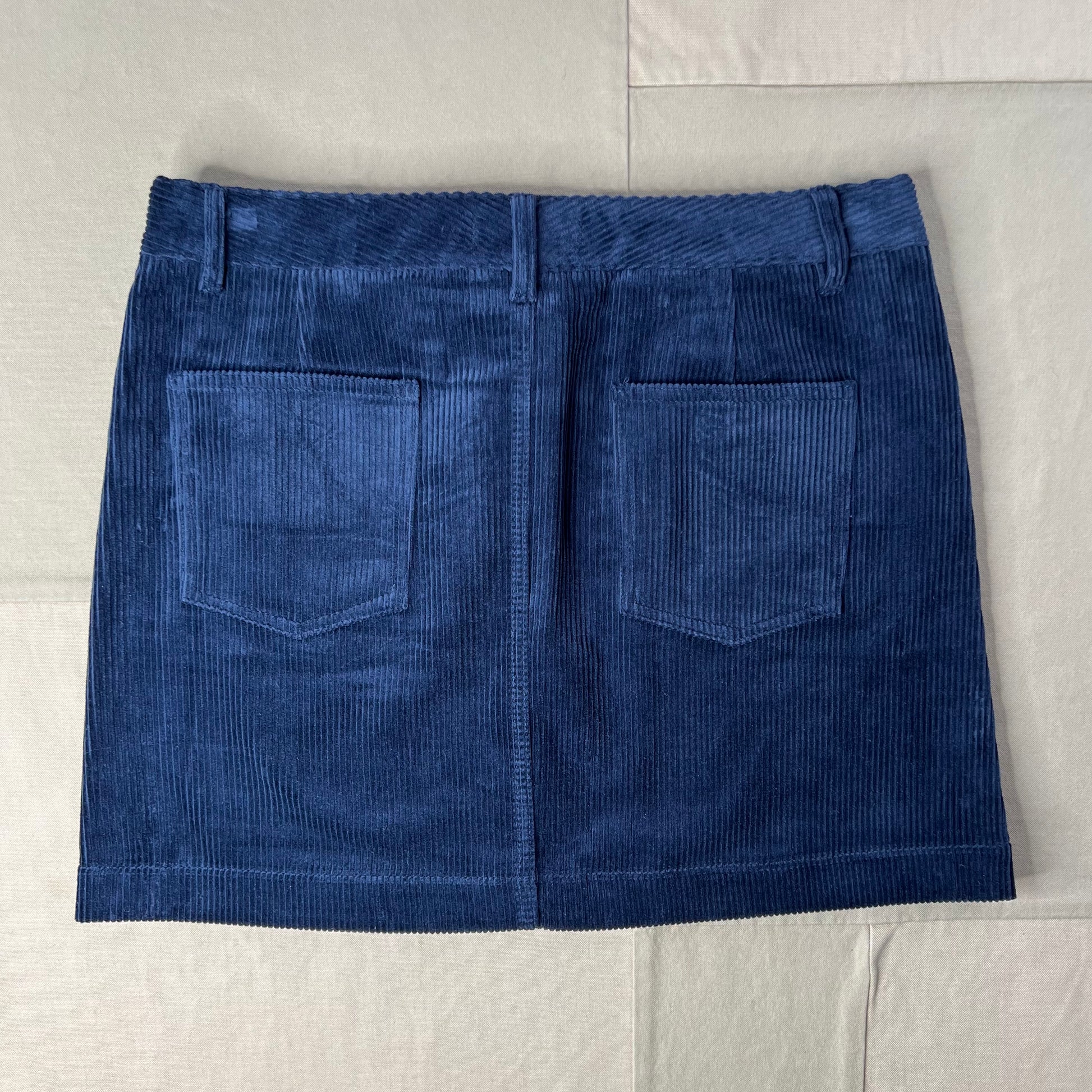 Mid-rise, A-line fit, pockets on the front and back, zipper fly.