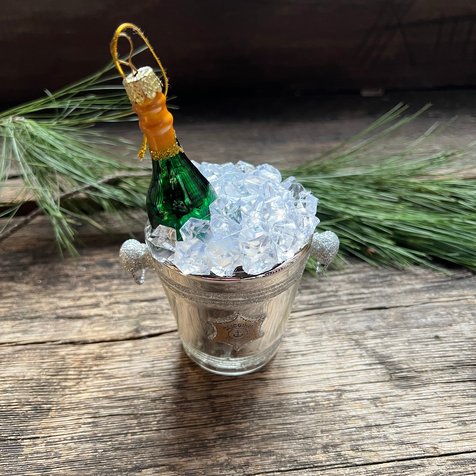 Champagne on Ice Glass Ornament