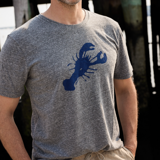 - A SAULT original graphic of a navy lobster on a grey shirt.