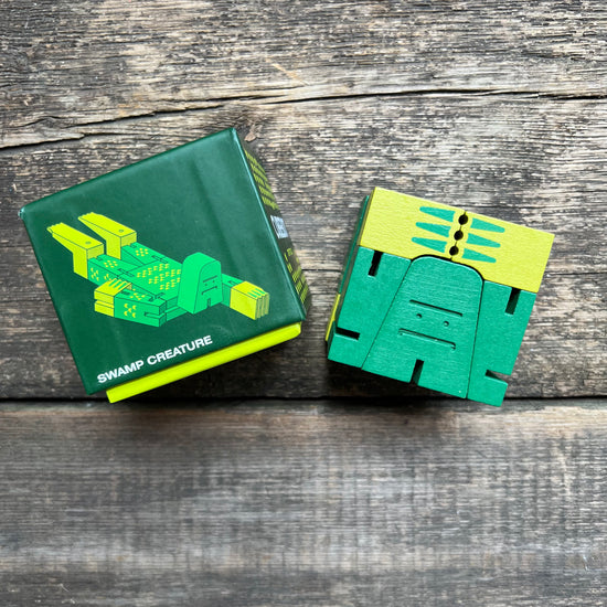 Made from wood and elastic, Cryptoids can be positioned to hold dozens of poses. When they need to elude a sighting, they fold back into a perfect cube. A legendary toy for all ages that will endure generations of play.