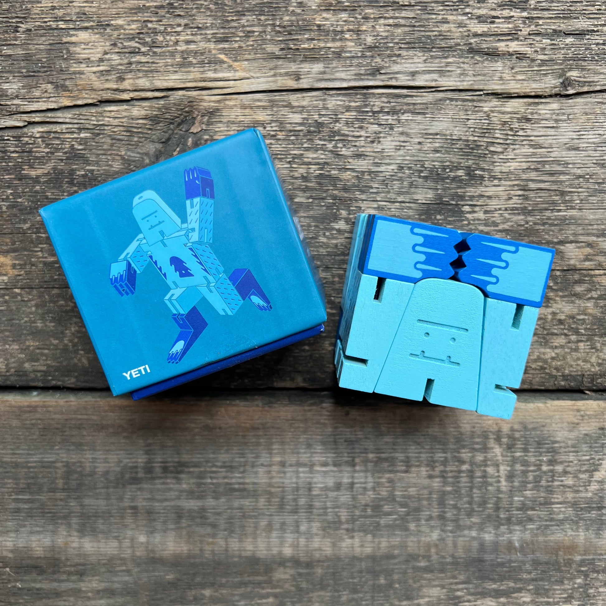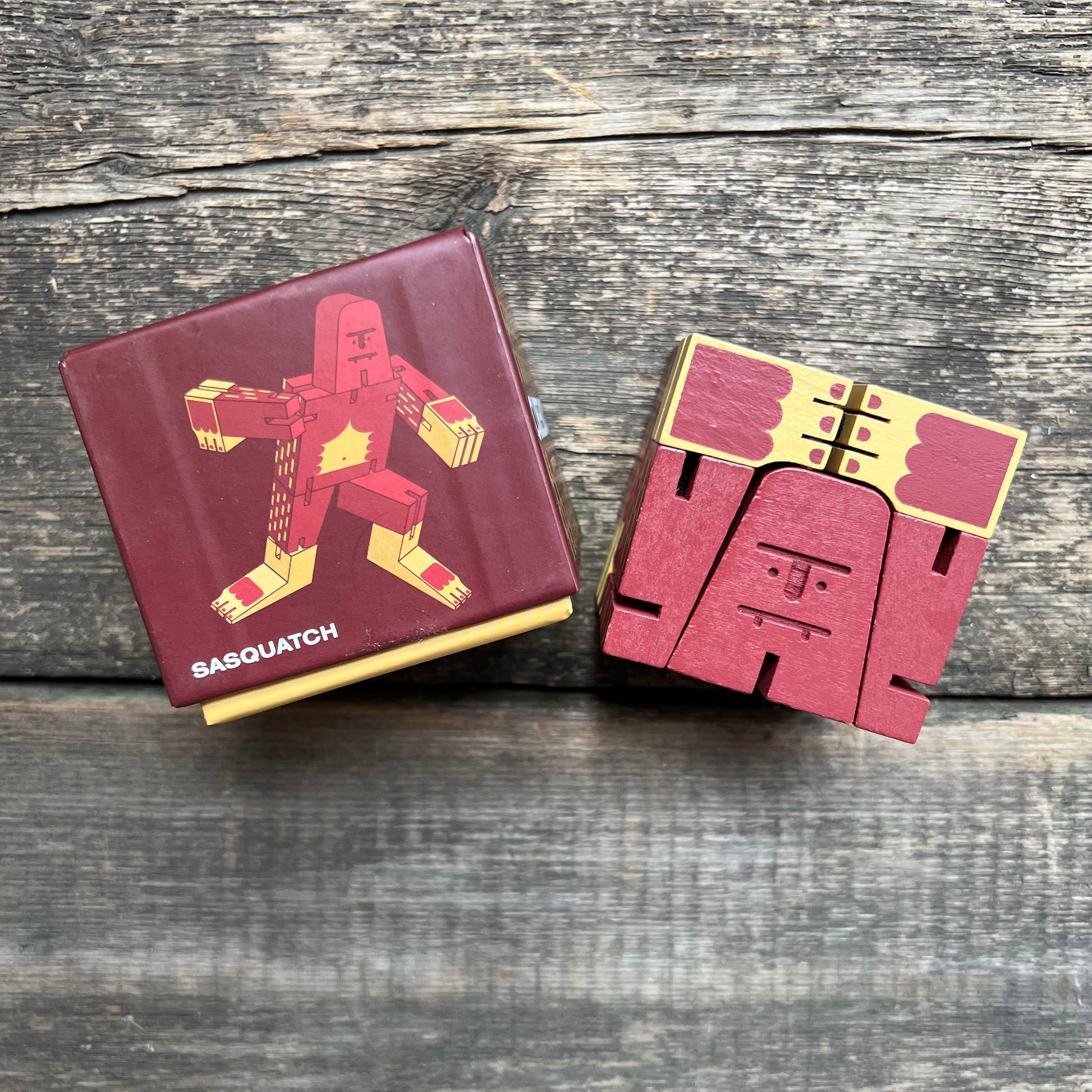 Cryptoids are wooden toy robots-meet-mythical creatures inspired by Japanese Shinto Kumi-ki puzzles. In the world of Cubebot, Cryptoids are known to be monstrously friendly and instill a wonderment of the unknown.