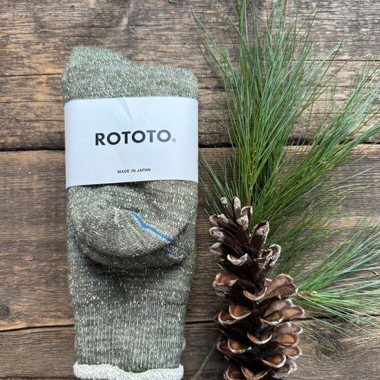 - These double face socks have been in ROTOTO’s collection since the establishment of the brand. Designed with an inspiration from mountaineering socks, the item features merino wool on the surface and un-dyed low-count organic cotton fabric as the lining to create a soft and thick feel like a sweatshirt. The liner material feels fluffy and comfortable with a napped surface.