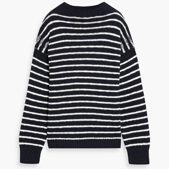 Harbor Stripe Sweater in Cotton, Dark Navy/Ivory