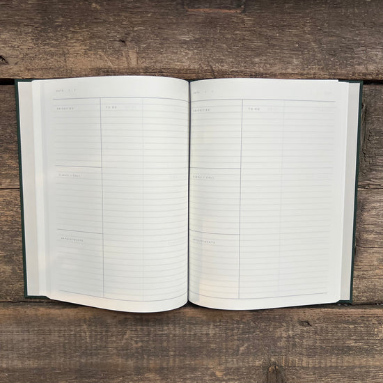 The Work Journal has two main sections: One section for structuring your daily to do's, priorities and appointments; and one section for notes. The book is designed to slot into your daily work routines. There is space to plan the day’s activities, pages to summarize your meetings and pages for notes, thoughts and ideas.