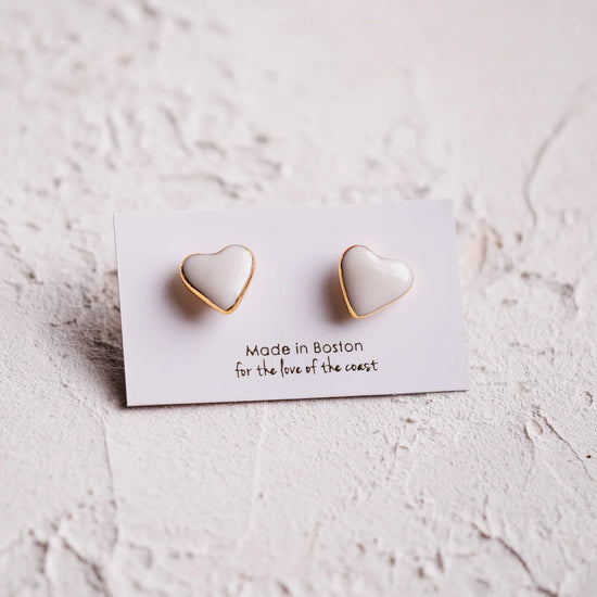 Heart Stud Earrings, White