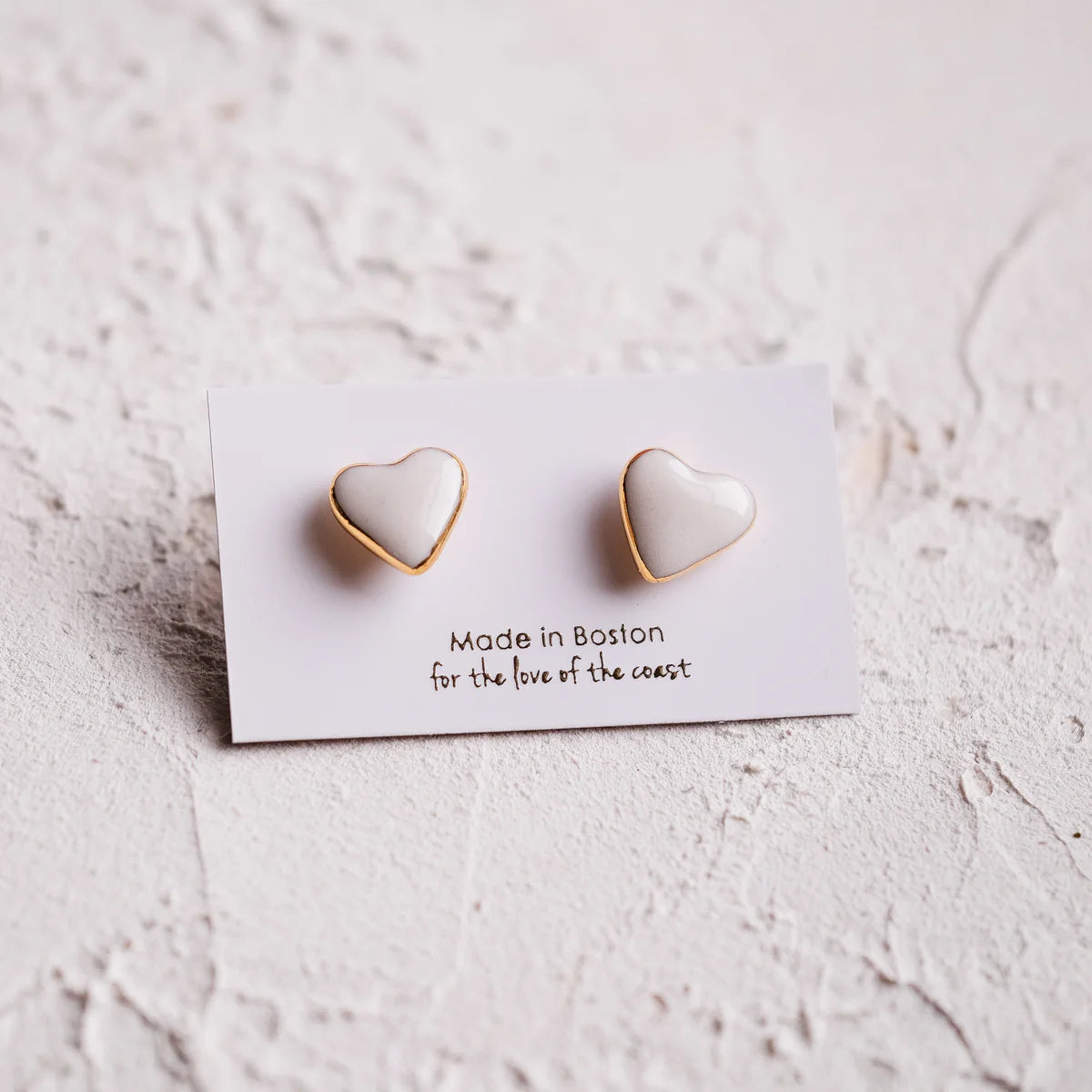 These little candy heart stud earrings are a sweet and minimal gold treat for the ears. A hard porcelain candy that you should not eat, as tempting as your ears may look with them on. Simple, clean, and dare one say, elegant as far as hearts go.