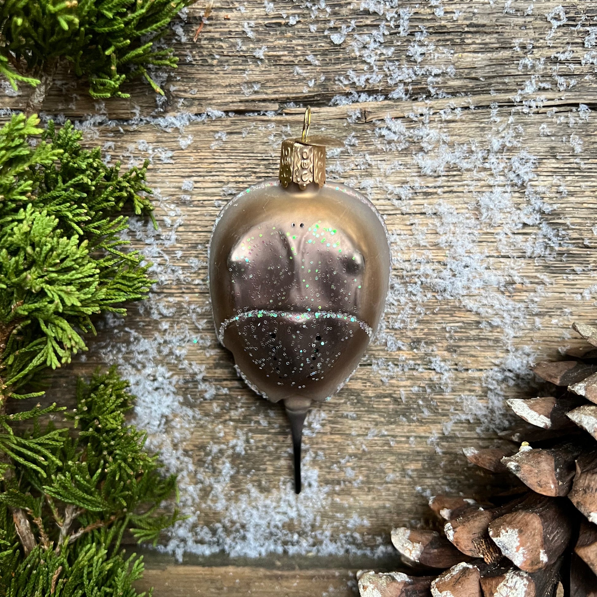 Make waves this holiday season with a true ocean original! This horseshoe crab ornament brings seaside sparkle with prehistoric charm.