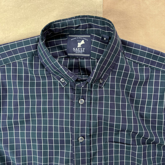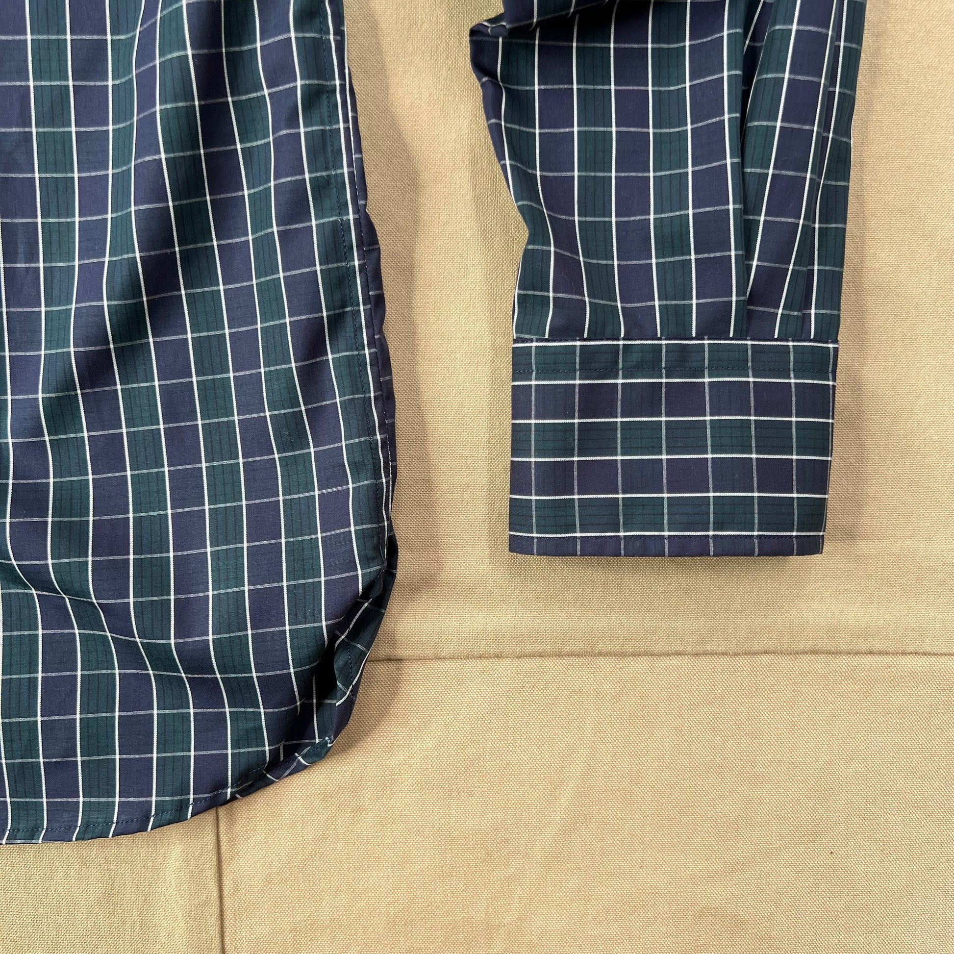 Long Sleeve Button Down Shirt, Navy Green Windowpane