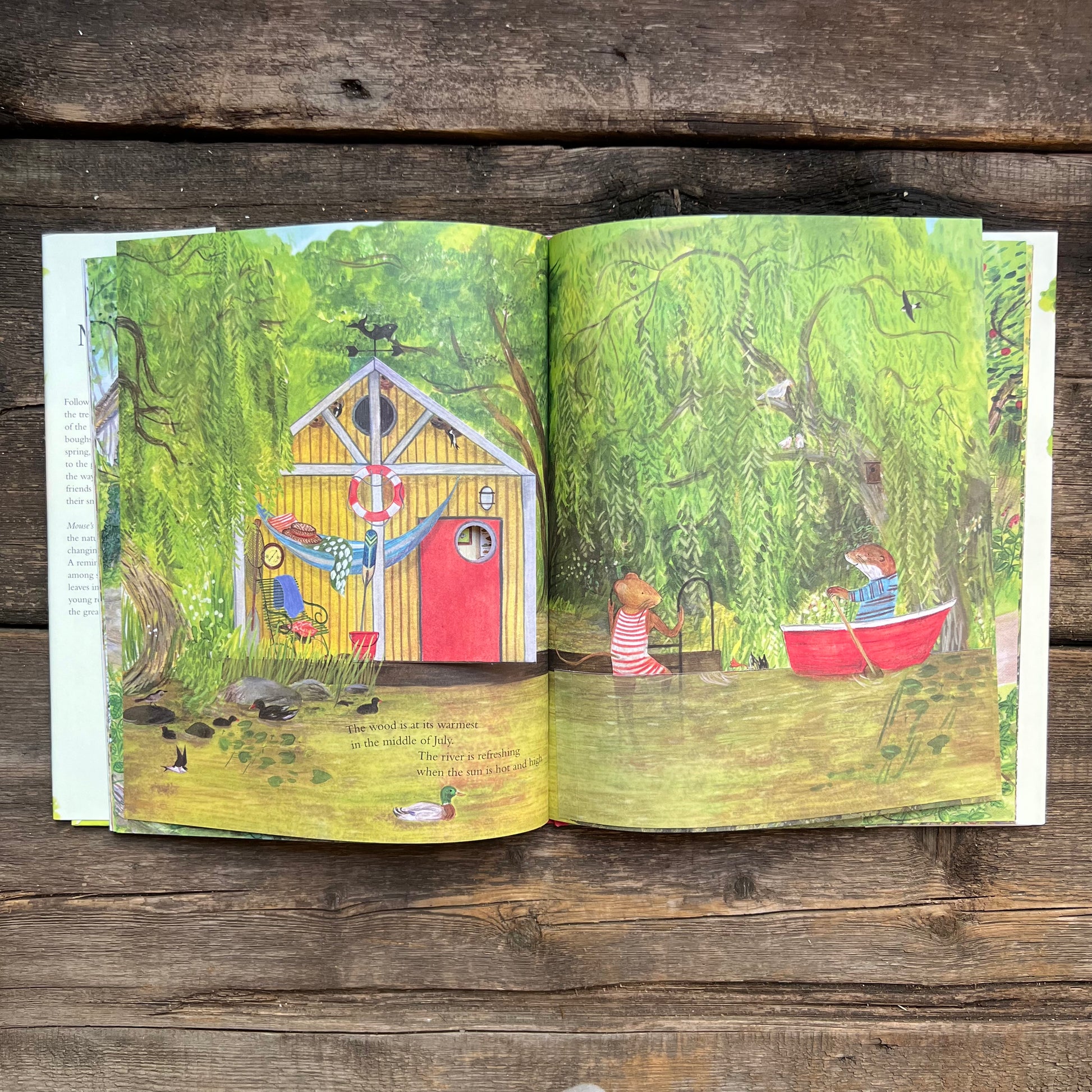 Mouse first ventures out in wintry January to visit his friend Squirrel. Mouse moves on to wake up Hedgehog for the arrival of spring, and as he continues along the path in the wood, Mouse’s journey from friend to friend maps out the changes in seasons from January through to December.