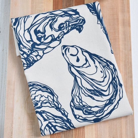 - Screen printed with their original Oyster design, these are made and hand printed in their Rockport, Maine studio using eco friendly ink. Premium and high quality, these flour sack towels are both utilitarian in the kitchen and beautiful as a fine dining linen.