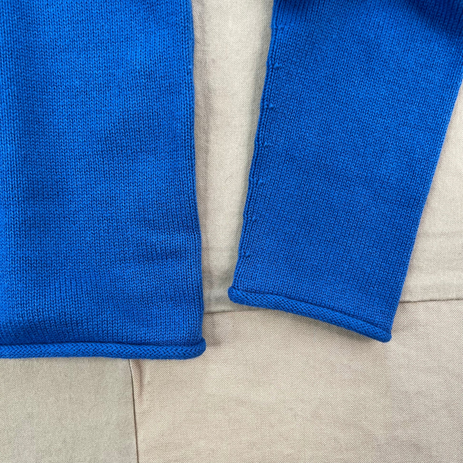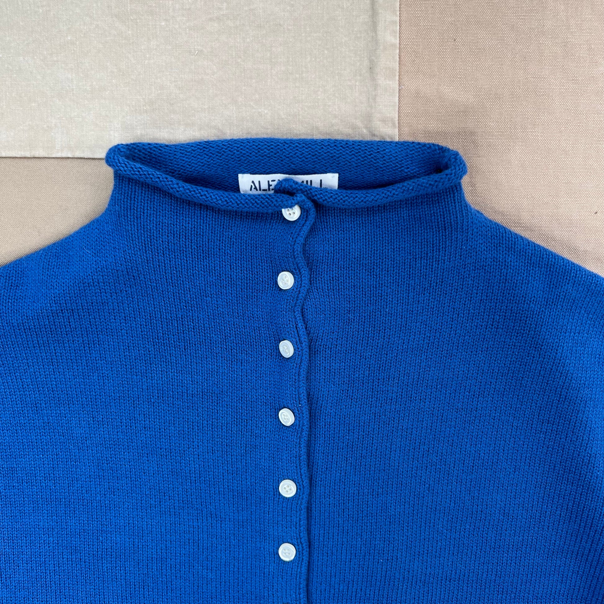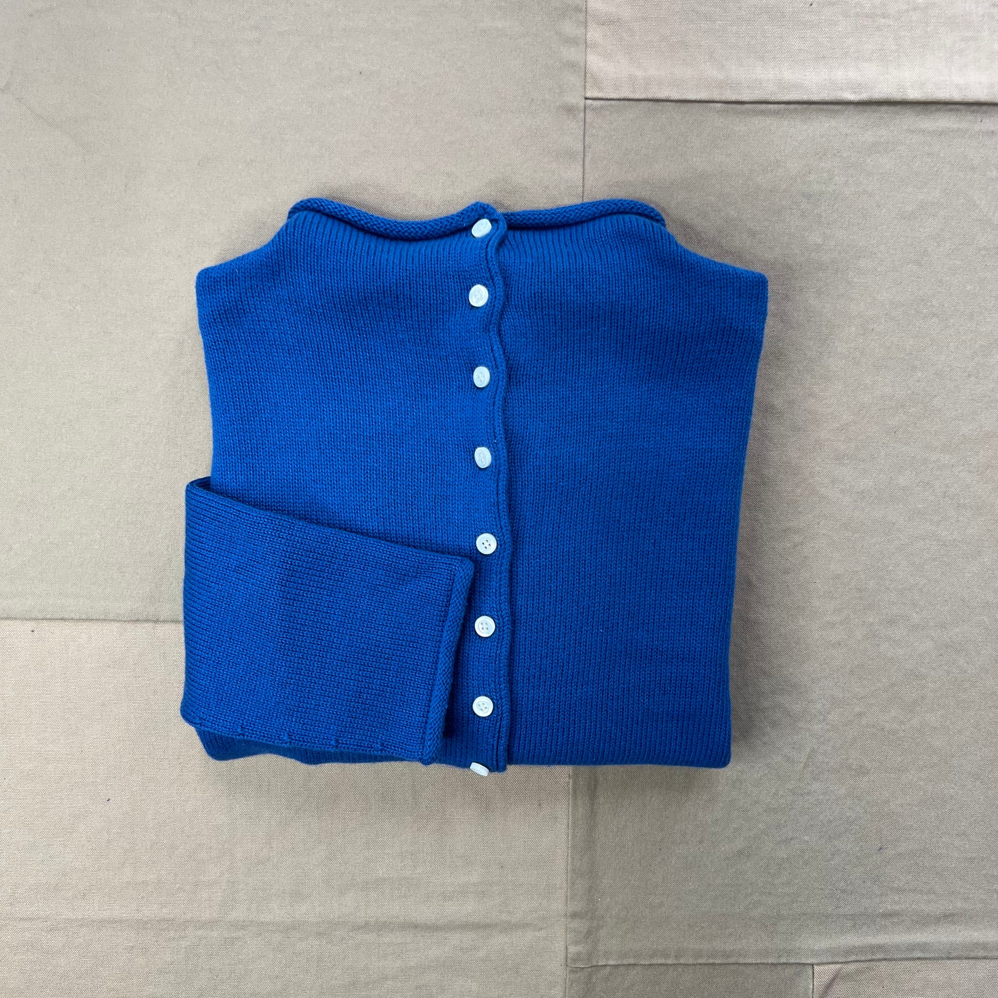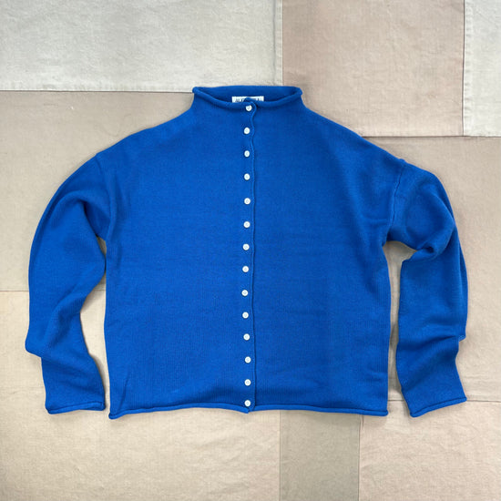 Taylor Roll Neck Cardigan in Cotton Cashmere, Cosmic Blue