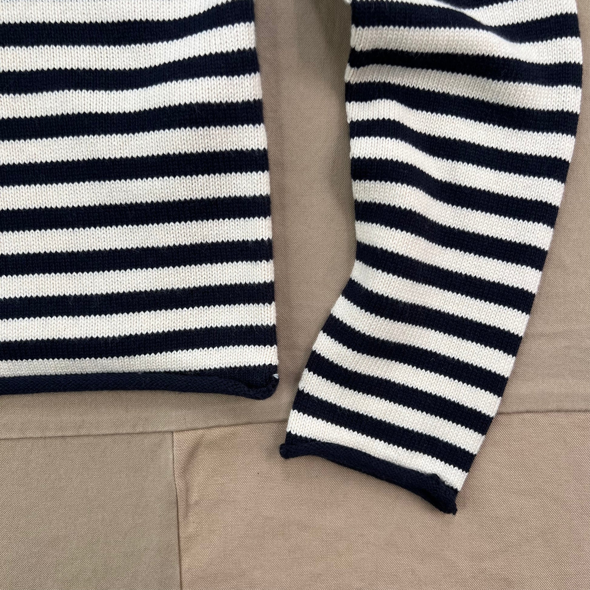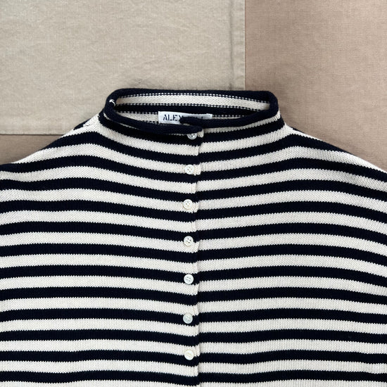 Taylor Roll Neck Cardigan in Cotton Cashmere, Navy/Ivory