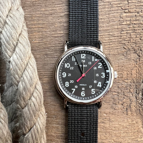 - This is Timex's most comfortable, versatile and effortlessly cool watch yet! The weekender essential is designed with slip-thru straps, so you can easily change them depending on your outfit or mood. Go beyond the basics; have some fun; make a suit feel less stuffy; do the unexpected.