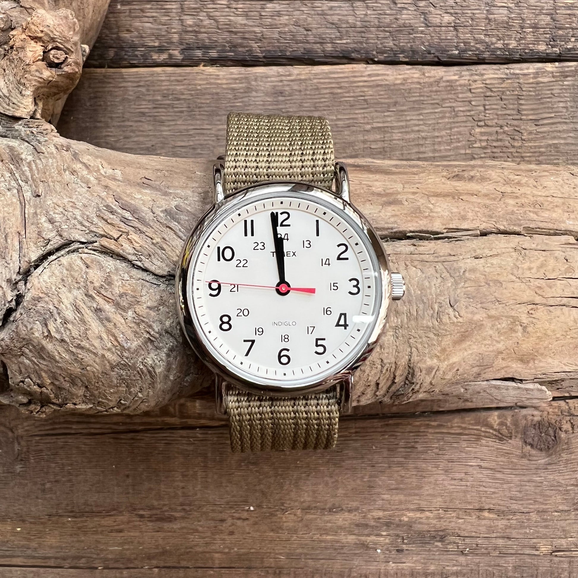 - This is Timex's most comfortable, versatile and effortlessly cool watch yet! These weekender essentials are designed with slip-thru straps, so you can easily change them depending on your outfit or mood. Go beyond the basics; have some fun; make a suit feel less stuffy; do the unexpected.