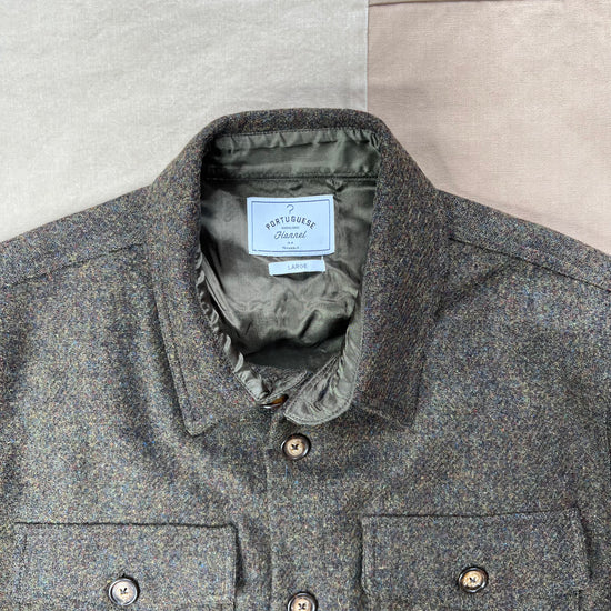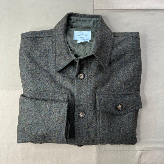 The Wool Field Overshirt by Portuguese Flannel is a timeless favorite crafted from fabric straight out of their famous collection. Cozy melton wool keeps you warm, while the silky viscose lining adds a touch of comfort. It comes with two buttoned chest pockets, adjustable cuffs, and a relaxed fit with a clean straight hem—perfect for layering your adventures in style!